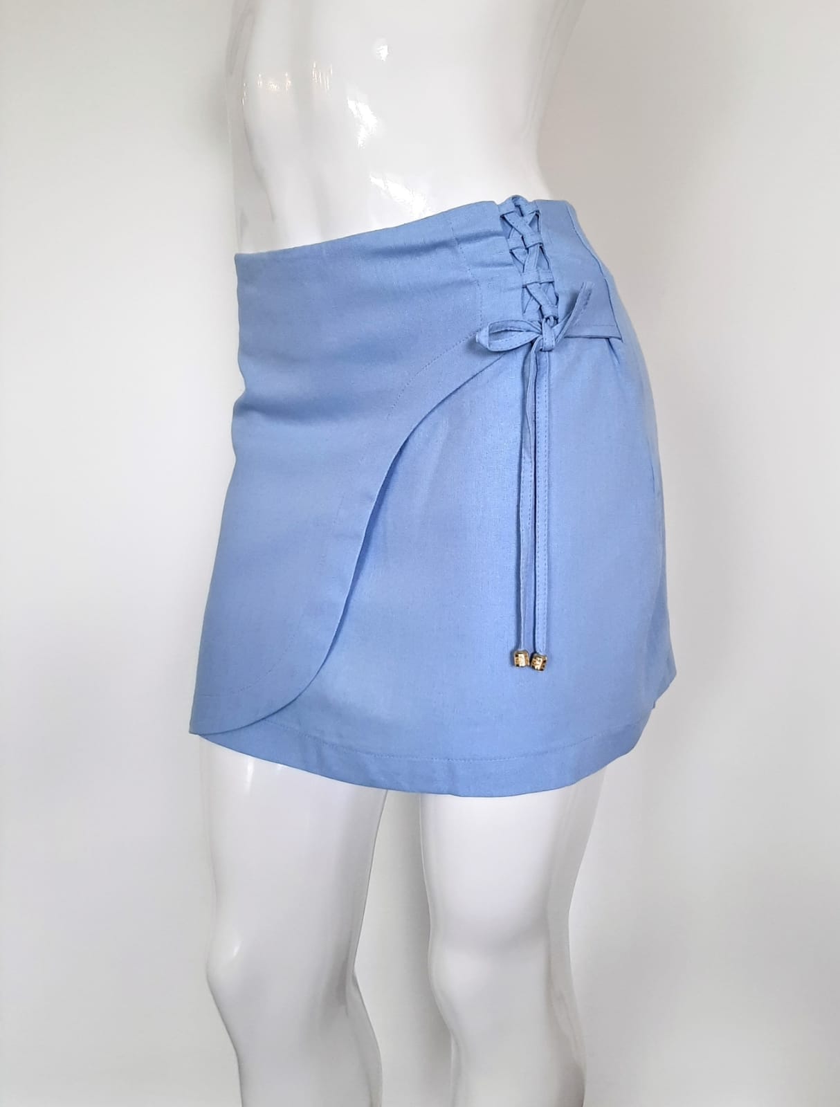 O tecido proporciona leveza e frescor, ideal para o clima quente. O design apresenta um elegante detalhe na lateral e fechamento em zíper invisível, garantindo um ajuste perfeito e uma silhueta sofisticada. Versátil e cheio de personalidade, é uma peça que combina perfeitamente com diferentes ocasiões.